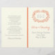 Korallenwaldkranz Rahmen gefaltete Hochzeitsfeier und Party-Programm mit einem korallenorangen Rahmen aus Blätter und Text in grau auf Elfenbein. Dieses moderne stilvolle und elegante Template ist ein völlig individualisierbarer Design-Teil eines Hochzeitszimmers, das für Ihre Hochzeitsfeier im Frühjahr, Herbst und Herbst perfekt geeignet ist. Man muss es in der Mitte falten. Wählen Sie nur diesen Papierwert aus, da er sich gut faltet.