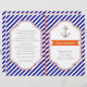 Navy, weiße Streifen und Anker Korallen orange nautische Hochzeit gefaltet Hochzeit Zeremonie und Party oder Empfang Programm. Stilvoll gestreiftes Muster mit marineblau, weiß diagonalen Streifen, Anker mit korallorangefarbenem Liebe Herz und Seil und grau-weiß in einem Rahmen mit Korallenbanner. Zeitgenössisch und dennoch mit einem Vintagen Blick in gewisser Weise. Sie können Hintergrund und Textfarbe aus dem Zazzle Farbdiagramm ändern. Dieses elegante Design ist ein vollständig anpassbares Template und ist Teil eines Hochzeitszimmers, das für eine Hochzeitsfeier im Sommer oder eine Hochzeitsfeier am Strand geeignet ist. Man muss es in der Mitte falten. Wählen Sie nur diesen Papierwert aus, da er sich gut faltet.
