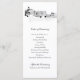 Mit dieser Karte können Sie auf der einen Seite Ihre Hochzeitsfeier und auf der anderen Ihr Hochzeitsfeierprogramm beschreiben. Passen Sie an, wenn Sie zusätzliche Textzeilen hinzufügen möchten. Mit einem schwarzen Drei-Stufen-Keil, Musiker und Musiknoten vor weißem Hintergrund.