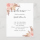 Ein modernes, elegantes Hochzeitsprogramm, Zeitleiste. Weiß mit Pampasgras und Rosa, goldfarbene Rose, Rose. Personalisieren und fügen Sie Ihre Namen und Hochzeitsdetails. Schwarze Buchstaben. Wenn Sie mehr Text haben, ist es möglich, den Zeilenabstand zu verringern.