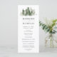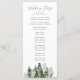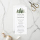Elegantes rustikales Hochzeitsprogramm mit Ihren Namen und Hochzeitsdetails mit einem Wald von dunklen Jäger grün & Salbei Aquarellbäumen. Persönlich gestalten Sie die Herbsthochzeiten, indem Sie Ihre Hochzeitszeit und -ort, die Reihenfolge der Veranstaltungen und die Hochzeitsfeier auf der Rückseite hinzufügen. Entworfen, um sich mit unserer Hochzeitskollektion Rustic Pine Forest abzustimmen.