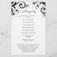 Personalisiertes Hochzeitsprogramm mit fantasievoller Schwarz-Weiß-Swirl. Dekorative Wirbel mit Blätter und Rose, schöne Schriftart mit wirbelnden Bändern. Einfaches, modernes und klassisches Hochzeitsprogramm, individuell auf Ihre Termine, Namen und auf der Rückseite fügen Sie Ihre feierlichen Namen und Titel und eine besondere Nachricht von Braut und Bräutigam zu den Gästen.