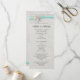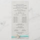 Aqua Band, Spitze und Sternenfisch grauen Vintagen Strand Hochzeitsprogrammkarte ist zwei Seiten mit Zeremonie Details auf der Vorder-und Hochzeitsfeier Teilnehmer auf der Rückseite.