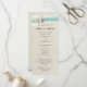 Aqua Band, Spitzen und Vintage Strand Hochzeitskarte ist zwei Seiten mit Zeremonie Details auf der Vorder-und Hochzeitsfeier Teilnehmer auf der Rückseite.