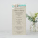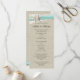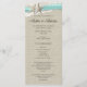 Aqua Band, Burlap, Spitze und Seesterne rustikale Strand Hochzeitsprogrammkarte ist zwei Seiten mit Zeremonie Details auf der Vorder-und Hochzeitsfeier Teilnehmer auf der Rückseite.