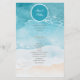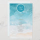 Beach, Ocean Watercolor Background Wedding Program Dieses atemberaubende Hochzeitsprogramm vereint die ruhige Schönheit eines Küstennetzes mit seinem Aquarell-Hintergrund in sanften Blau- und Beige-Tönen, erinnert an das Meer und die Sandstrände. Das Design besteht aus einem runden Rahmen mit zarten, weißen Kanten, die den Effekt von Wellen, die sanft am Ufer lappen. Die Namen des Ehepaares werden elegant in einem fließenden Skript-Schriftart geschrieben, wobei eine romantische Touch hinzugefügt wird, während die Details in einem gepflegten serifenlosen Schriftart in einem warmen, goldenen Ton dargestellt werden. Ideal für einen Strand oder eine Hochzeit in Urlaubsort, diese Einladung strahlt Ruhe und Eleganz aus und lädt die Gäste zu einer Feier voller Liebe und Naturschönheiten ein. F008