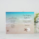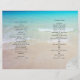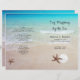 Tropisches Hochzeitsfeierungsprogramm am Strand. Türkisfarbenes Meerwasser und glatter Sand am Strand bilden den Hintergrund für dieses maßgeschneiderte Programm, das in der Mitte gefaltet wird. Lässiger Schriftart in dunkelgrau lässt sich leicht auf vier "Seiten" anpassen. Sand Dollar und Seesterne dekorieren, um das Paar zu repräsentieren.