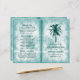 Diese Doppelprogramme sind ideal für alle Paare, die eine romantische Hochzeitsfeier am Strand planen. Das Design besteht aus einer tropischen aquamarinen grünen Palme auf einem türkisfarbenen und weiß strukturierten Effekt-Hintergrund mit farblich koordinierter bearbeitbarer Formulierung. Das schlichte Design kann personalisiert sein, um Ihre besondere Veranstaltung zu Anzug und wird die perfekte Ordnung für jedes tropische Party, einschließlich Brautparty, Verlobungen, Polterabende, Geburtstagspartys und vieles mehr.