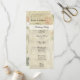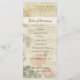 Diese schöne Karte beschreibt auf der einen Seite Ihre Zeremonie und listet Ihre Hochzeitsfeier auf der anderen Seite auf. Es zeichnet sich durch ein Vintages Design von Rose und Musik aus.