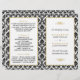 Diese doppelten Vorlagen eignen sich ideal für ein romantisches Hochzeitsfest. Das Design zeichnet sich durch einen Vintagen schwarz-weißen Damast-Hintergrund aus, der mit einem goldfarbenen Rahmen mit einem verzierten, blumengeschmückten blühtest versehen ist und mit eleganten Formulierungen in Schwarz und Gold veredelt wurde. Das einfache Design kann personalisiert sein, um Ihre besondere Veranstaltung zu Anzug und wird die perfekte Ordnung für alle antiken Themen Party, einschließlich Brautparty, Verlobungen, Polterabende, Geburtstagspartys und vieles mehr.