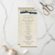Ein romantischer Vintager Look von Burlap und Spitze mit einem marineblau blauen Bogen bedruckten Design Hochzeitsprogramm, um unsere Einladungen zu ergänzen.