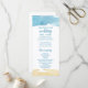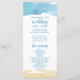 Der Sand und das Hochzeitsprogramm im Wasser sind perfekt für eine Hochzeit am Strand. Das abstrakte Design zeichnet sich durch eine gelbe und blaue Aquarellstruktur aus, die so gestaltet ist, dass die Meeresvibes am Meer sichtbar werden. Geben Sie den Namen der Braut und des Bräutigams, das Datum und den Ort der Hochzeit, Dankeschön-Nachricht, Dienstordnung, Brautparty und ein optionales "in Loving Memorial" ein.