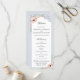 Dieses Hochzeitsprogramm zeichnet sich durch eine wunderschöne Aquarellgrafik pfirsichfarbener Blume mit Grün aus. Die Grenze ist ein weiches, leicht staubiges Blau.