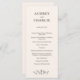 Ein traditionelles Hochzeitsprogramm in Schwarzweiß mit einer Wildblume-Skizze.