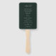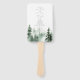 Eleganter Watercolor Forest Pine Tree Nature Scene, Hochzeitsprogramm Hand Fan. Schwarz-Weiß-Typografie mit der Koordination von Weiß- und Grünfarben.