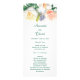 Ein elegantes und romantisches Hochzeitsprogramm. Rose in Aquarellfarben, Blume in Weiß und Rosa und einige blaugraue Trauben. Vorlagen für Ihre Namen, Daten, Einzelheiten der Zeremonie und des Party. Weiße Hintergrundfarbe vorne, blaugrau hinten. Grüne Buchstaben.