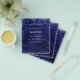 Bitte beachten Sie, dass dieses Programm/Menü auf Flyer-Papier und sehr dünn ist. Für dickere Programme/Menüs (das gleiche Design) besuchen Sie bitte unseren Shop. Ein klassisches Hochzeitsprogramm und ein Menü. Ein marineblauer Hintergrund. Die blaue Farbe ist ungleichmäßig. Weißer Text. Dekoriert mit Imitaten silbernen Glitzer, Glitzern. Personalisieren und hinzufügen Sie Ihren Namen, Datum und sowohl Ihr Programm als auch das Menü.