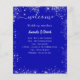 Ein klassisches Hochzeitsprogramm und ein Menü. Ein königlich blauer Hintergrund. Weißer Text. Dekoriert mit Imitaten silbernen Glitzer, Glitzern. Personalisieren und hinzufügen Sie Ihren Namen, Datum und sowohl Ihr Programm als auch das Menü. 1 Blatt = 1 Einladung mit Druckkante bis Kante.