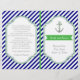 Navy, weiße Streifen und Anker Kelly Green nautical Hochzeit gefaltet Hochzeit Zeremonie und Party oder Empfang Programm. Stilvoll gestreiftes Musterdesign mit marineblau, weiß diagonalen Streifen, Anker mit Kelly grünen Liebe Herz und Seil und grau-weiß Text in einem Rahmen mit einem grünen Banner. Zeitgenössisch und dennoch mit einem Vintagen Blick in gewisser Weise. Sie können Hintergrund und Textfarbe aus dem Zazzle Farbdiagramm ändern. Dieses elegante Design ist ein vollständig anpassbares Template und ist Teil eines Hochzeitszimmers, das für eine Hochzeitsfeier im Sommer oder eine Hochzeitsfeier am Strand geeignet ist. Man muss es in der Mitte falten. Wählen Sie nur diesen Papierwert aus, da er sich gut faltet.