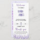 Erleben Sie den Charme Ihrer Hochzeitsfeier mit unserem Hochzeitskalender von Lavender Theme - eine reizvolle Ergänzung zu unserer zauberhaften Sammlung von Hochzeitsartikeln. Dieses Programm, das mit der wohltuenden Schönheit des Lavendels infiziert ist, ist dazu gedacht, Ihre Trauzeit perfekt zu ergänzen. Tauchen Sie ein in die Romantik des Augenblicks mit den zarten Lavendeltönen, die dieses Flachprogramm schmücken. Das elegante Design spiegelt das Wesen Ihrer Liebe wider und macht sie zu einem exquisiten Erlebnis für Ihre lieben Gäste. Dieses auf hochwertigen Cardstock gefertigte Theme Wedding Flat Program strahlt ein Gefühl von Raffinesse aus. Die glatte Oberfläche und die Liebe zum Detail sorgen dafür, dass jedes Element nahtlos mit Ihrem Hochzeitstil in Einklang steht und ein zusammenhängendes und optisch atemberaubendes Ensemble schafft. Passen Sie jedes Detail an, um Ihren einzigartigen Stil und Ihre Hochzeitsdetails zu Anzug. Von der Veranstaltungsreihenfolge bis zu den Namen Ihres Brautparty bietet unser Hochzeitsprogramm für Lavendel eine personalisierte Touch, die die Ästhetik Ihrer Zeremonie insgesamt verbessert. Lassen Sie sich verzaubern und gestalten Sie Erinnerungen mit diesem Schmuckstück zum Thema Lavendel. Bestellen Sie jetzt Ihr Hochzeitsflat-Programm und ließ Sie die Schönheit des Lavendelwebens durch Ihre Hochzeit, indem Sie Ihrem besonderen Tag eine zusätzliche Eleganz verleihen.
