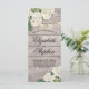 Vorlagen für Hochzeitsrackkarten - elegante weiße, hübsche Hydrangea-Blume und Strandleuchten auf rustikalem Holzhintergrund. Ein perfektes Design für Ihren großen Tag! Alle Textstile, Farben, Größen können an Ihre Bedürfnisse angepasst werden.