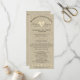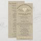Ein modernes rustikales Leinentypografie-Monogramm mit blassgelbem Herz schafft das perfekte Hochzeitsprogramm.