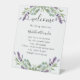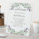 Weiß und elegant, mit Lavendelblumen, Blume und Eukalyptusgrün dekoriert. Personalisieren und fügen Sie Ihre Namen und Ihre Hochzeitstag Zeitleiste.