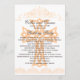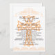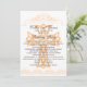Hochzeitsrouten bieten ein Cross-Design mit Kalligraphie-Rändern und mehreren Textfeldern, die Sie mit Ihren persönlichen Daten an der Vorderseite anpassen können, während die Rückseite ein Damast-Muster in Orange aufweist.