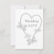Hochzeitsrsvp silber gefärbte Einladung Schmetterling Herzdesign. Passen Sie diese silberfarbene Einladung mit Ihren Hochzeitsdetails an, lassen Sie sie dann ausdrucken und Ihnen zuschicken oder laden Sie sie sofort herunter. Wenn Sie Hilfe bei der Anpassung benötigen, kontaktieren Sie uns über den Link auf dieser Seite. Silberfarbener Schmetterling und Herzdesign personalisierte Hochzeitsreise-Einladung, die Sie drucken oder sofort herunterladen können