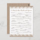 Unsere rustikalen Tipp-Karten sind eine lustige Aktivität für Hochzeitsempfang oder Brautparty. Sie können die Überschrift ändern, wenn Sie möchten, indem Sie Zazzles Tool "Personalisieren Sie diese Vorlage" verwenden. Besuchen Sie die Burlap- und Lace-Hochzeitskollektion und entdecken Sie unsere große Auswahl an Karos, die Sie koordinieren können.