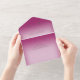 MIT ODER OHNE QR-CODE ZUM AUSSCHLIESSEN. Dieses schlichte und dennoch elegante Design hat einen modernen Look, mit zwei vergoldeten Hochzeitsringen auf einem weichen, weißen, blurfarbenen Overlay auf einem weichen fuchsienrosa Hintergrund. Personalisierte All-In-One-Einladungen sind eine einzigartige Kombination aus einer schön gedruckten, maßgeschneiderten Einladung und einer leicht zu abreißenden perforierten UAWG-Postkarte. Und sie sind so einfach zu bedienen! Man falte einfach, dann Siegel die Rückklappe mit den drei beiliegenden Klarkleben, und Post. Und wenn Ihre Gäste Ihre persönliche Einladung erhalten, reißen sie einfach die perforierte RSVP Karte ab und lassen sie in der Mail an Sie zurück!