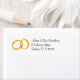 Aufkleber für das Hochzeitsselbe. Goldene Hochzeitsringe, anpassbare personalisierte Vorlage.