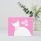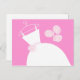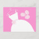 Bridale Postkarte mit hübschem Design in Rosa und Weiß mit einem stilisierten Hochzeitskleid auf einem Hangar, begleitet von einem Bouquet Blume. Ein individualisierbares Design für Sie, um mit Ihrem eigenen Text, Bildern und Ideen zu personalisieren.