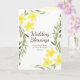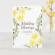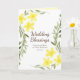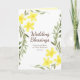 Hochzeitsgrußkarte mit einer Schrift aus dem Bibelbuch von Johannes 15:12 und mit hellgelben Blüten verziert, inmitten von mit Aquarell bemalten Grünflächen. Im Inneren ist eine sehr helle Farbtöne aus Gelb und Text, die Sie bearbeiten können, um Ihre Bedürfnisse.