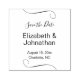 Dies ist eine Hochzeit speichern Sie das Datum Briefmarke. Die oberste Zeile des Textes steht Save the Date in einem eleganten Skript. Es gibt Zeilen ohne Skripttext für die Namen der Braut und Bräutigam, das Hochzeitstag und den Ort der Hochzeit. Alle Texte können bearbeitet oder gelöscht werden.