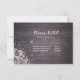 Eleganter, Vintager Spitz und funkelnder, rosafarbener Glitzer auf dunklen rustikalen Holzhütten Hochzeitskarten RSVP, ideal für rustikale Hochzeiten, Scheunenhochzeiten, Hochzeiten auf dem Land und Hochzeiten im Vintage. Sehen Sie sich alle passenden Stücke in der Sammlung an.