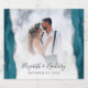 Dieses moderne Hochzeitsdesign zeichnet sich durch aquamarine Aquarellfarben und silberne Imitate Glitzer an den links und rechten Kanten aus. Personalisieren Sie es mit einem Foto der Braut und Bräutigam, zusammen mit ihren Namen in eleganter Handschrift und dem Hochzeitstag unten. Mithilfe eines Farbverlaufsefilters wird der schwarze Pop erzeugt.