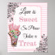 Whimsical Pink "Liebe ist süß, so Take a Leckerei" Hochzeitszeichen für Süßigkeiten Buffet, rosa Zeichen für ein Bonbon Bar bei einer Hochzeit oder Babydusche.