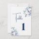 Diese Hochzeitstischkarte wird in weißem Leinenkartenpapier mit modernem Layout eines Aquarellkunstdrucks mit schönen blauen und weißen Blume gezeigt. Text in einer Navy Blue Farbe. Passen Sie dieses Element an, indem Sie den Beispieltext nehmen und stattdessen Ihre Informationen darin einfügen. Bestandsbild: freepik.com