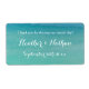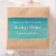 Speziell für Hochzeitsweine und Wasserflaschen. Personalisierte, elegante Aufklebervorlage mit türkisblauem Aquaplatt. Extravagante Skripttypografie für Namen von Braut und Bräutigam und danke Ihnen Nachricht. Verwenden Sie als klassische Tischdekoration oder danken Sie für die Gäste des Party. Enthält Name oder Monogramm plus Heiratsdatum. Meerwasserfarbe Malerei Design. Auch gut für extravagante Verlobung oder Jubiläum Ansammlung. Mit dieser glänzenden DIY-Vorlage erstellen Sie Ihre eigenen Mineralwasser-Etiketten. Anpassbare Hintergrundfarbe.