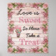 Korallenrosa Vintage Rose blumengeschmücktes Holz "Liebe ist süß, so Take a Leckerei" Hochzeitssymbol für Süßigkeiten Buffet, Rosa & Schmetterlinge Zeichen für ein Süßigkeiten Bar bei einer Hochzeit oder Babydusche.