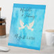 Bearbeitbares Hochzeitzeichen. Schöner, blauer Hintergrund mit Tauben und rosa Herzen. Kann für alle Feiern verwendet werden, nicht nur Hochzeiten!