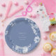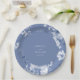 Mit diesem blauen, blumenblauen Hochzeitspapier können Sie Ihrem besonderen Tag Eleganz verleihen. Dieses Design mit einer zarten Aquarellgrenze in sanften Blautönen und personalisierten Namen und einer anmutigen Typografie ist ideal für Hochzeitsfeiern, Brautpartys oder romantische Blume. Eine schöne Ergänzung zu Ihrem Event-Geschirr, das Charme und Funktionalität verbindet.