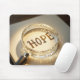 Eine Lupe hebt das Wort "HOPE" hervor, das auf einem Buch oder auf einer Oberfläche geschrieben ist, die einen Schatten wirft