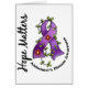 Stehen Sie für Alzheimers Krankheitsbewusstsein beim Teilen einer inspirational Mitteilung der Hoffnung mit ins Auge fallenden T - Shirts, Kleid, Waren stark, und die Geschenke, die den inspirierenden Slogan kennzeichnen, hoffen Angelegenheiten und ein auffallendes lila Alzheimers Krankheitsbewusstseinsband, das mit koordinierenBlumen und Blätter entwirrt wird.