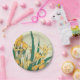 Yellow Irises und Grasshopper - Dieses Bild basiert auf einem Vintagen antiken Katsushika Hokusai-Kunstdruck aus den 1820er Jahren. Das Gemälde zeigt einen Grashüpfer in einem Garten mit gelben Iris-Blume. Grafik asianisches japanisches Design.