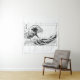 Hokusai trifft Fibonacci, Schwarz und Weiß Tapeste Wandteppich