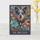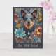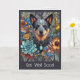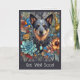 Bild eines australischen Rinderhundes mit nativen australischen Blume und blauem Schmetterling. Text liest sich gut bald. Senden Sie Ihre Umarmungen und Liebe während Sie sich erholen. Anpassbare Grußkarte mit der Option, Text und Bilder zu ändern, indem Sie auf Diese Vorlage personalisieren klicken.