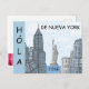 Freuen Sie sich auf die spanische Postkarte mit der Freiheitsstatue und die New Yorker Skyline und Hola de Nueva York.