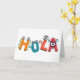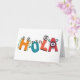 Hola Grußkarte, gemacht mit lustigen, von Hand gezeichnet Charakteren.